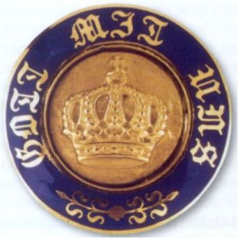 Moreover, the medallion's center plate, which displays the crown, is smaller in the first model compared to the second. Another significant difference is that the wreath around the medallion in the first model is narrower and enameled in a dark blue, while the second model's wreath is broader.