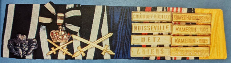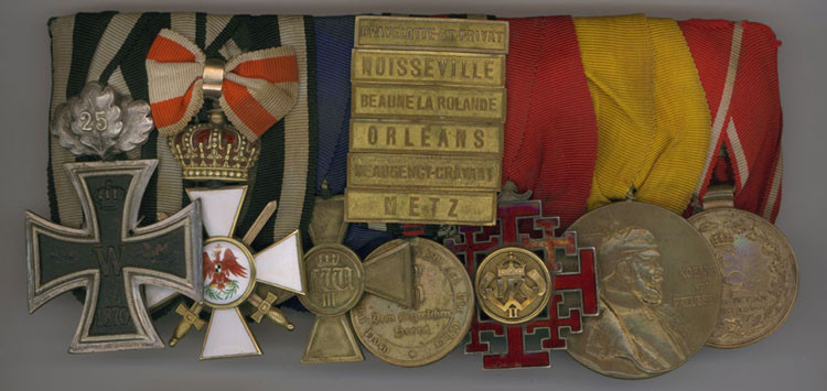 Medal Bar of Generalmajor Franz Ludwig Wilhelm Müller followed below by his "Große Feldschnalle" ribbon bar