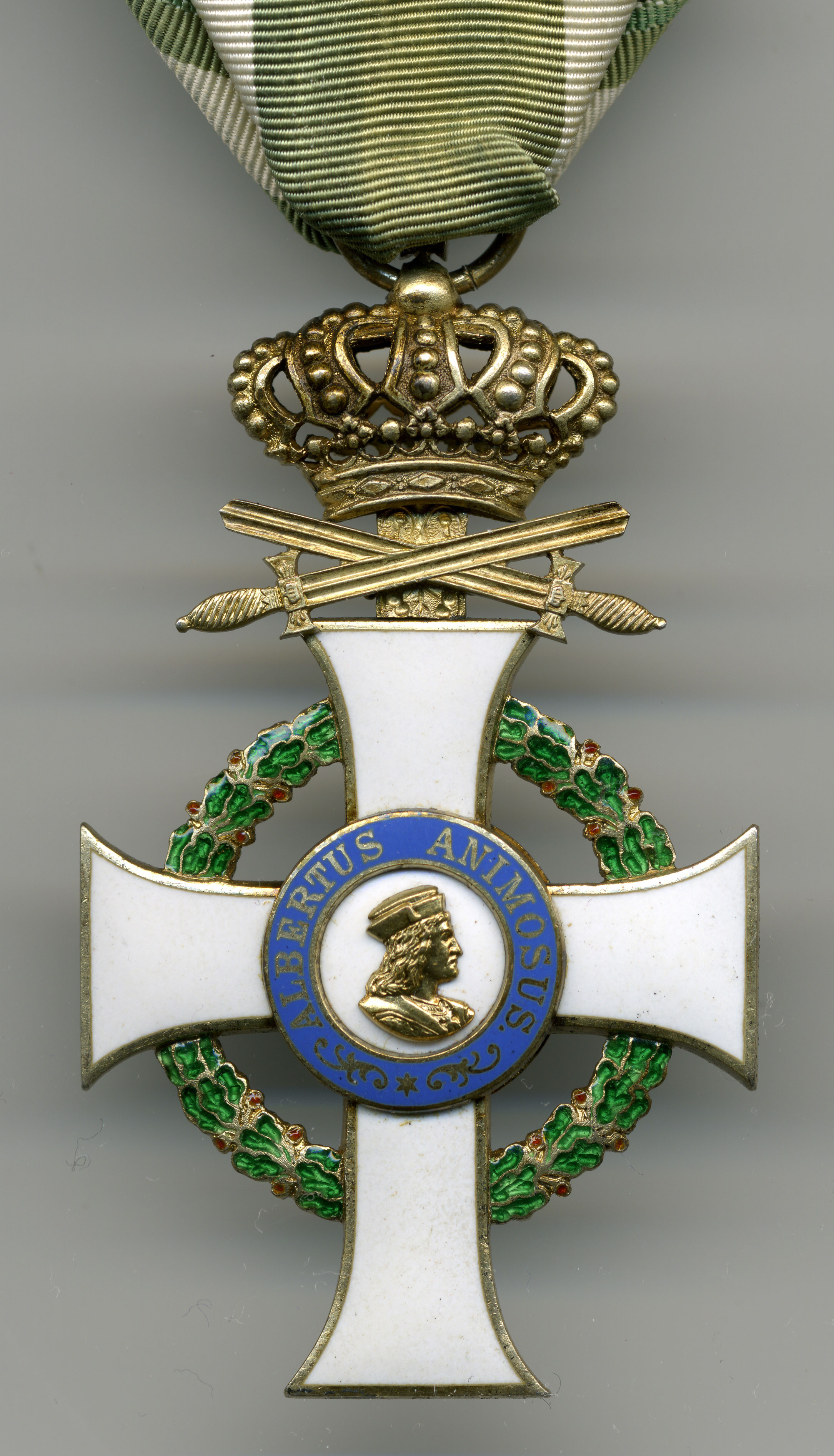 2. When awarded a higher grade of the order for merit in peace to the bearer of the lower grade of the Albert Order with war decoration the swords remain but will be worn on the higher grade as described in 1.